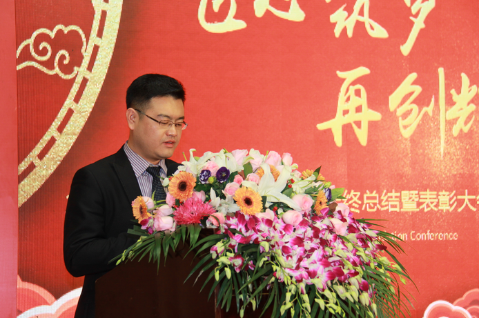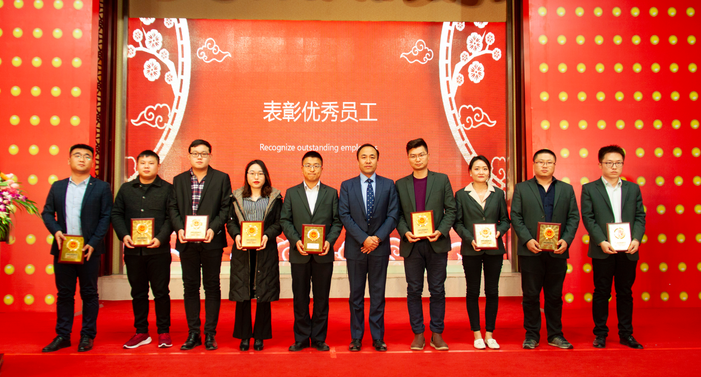 申宏伟副总裁主持表彰2018年度的优秀员工。王国华董事长为优秀员工授予奖牌。